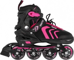 Uniwersalny zestaw 4w1 dla młodych łyżwiarzy łączy łyżwy inline, quad (trekowe) oraz łyżwy na lód w jednym sprytnym rozwiązaniu. Dzięki 5‑stopniowej regulacji rozmiaru (39–43), aluminiowej płozo-ramie, kółkom PU 72 mm 85A i łożyskom ABEC 7 zapewnia płynną jazdę, pewne trzymanie i długą żywotność.