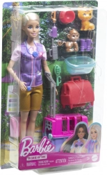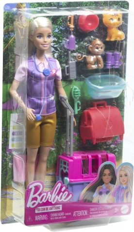 Z zestawem Barbie ratowniczki zwierząt dzieci zanurzą się w świat opieki weterynaryjnej i ratowania dzikich zwierzątek. Lalka ma ruchome kończyny, nosi praktyczny strój terenowy i jest gotowa na każdą misję. Dwa maluchy – małpka i tygrysiątko – czekają na badanie, karmienie i troskliwą opiekę.