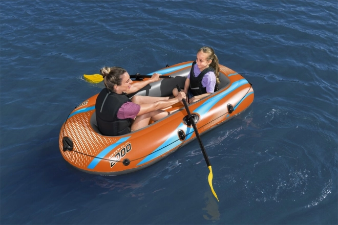 Nadmuchiwana podłoga zapewnia dodatkowy komfort podczas siedzenia, a w pełni nadmuchiwana konstrukcja gwarantuje stabilność i bezpieczną żeglugę na spokojnych wodach.