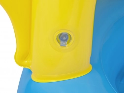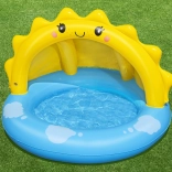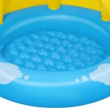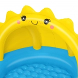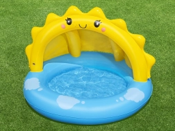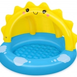 Basenik charakteryzuje się wesołym designem z żółtym słoneczkiem i niebieskim tłem z obłokami, co przyciągnie każde dziecko.