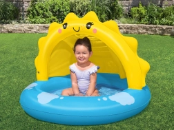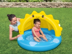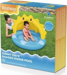 Dmuchany basenik Bestway to idealny wybór dla dzieci podczas gorących letnich dni. Dzięki swojemu przyjaznemu designowi z słoneczkiem i niebieskimi chmurkami zapewnia nie tylko radość z zabawy, ale także bezpieczne schronienie przed słońcem.
