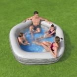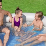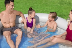 Ciesz się letnim relaksem z narożnym, dmuchanym basenem BESTWAY o wymiarach 213 × 206 × 53 cm. Oferuje szybkie pompowanie i spuszczanie wody, stabilną konstrukcję z dwiema komorami powietrznymi, szerokie miękkie ścianki do wygodnego oparcia, zintegrowane dmuchane oparcia z poduszkami oraz uchwyty na napoje. Świetny wybór do rodzinnego relaksu w ogrodzie.