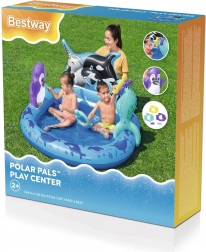 Dmuchane centrum zabaw Polar Pals marki Bestway jest idealne do zabaw wodnych na zewnątrz w twoim ogrodzie. Design jest inspirowany antarktycznymi zwierzętami i oferuje zabawowe funkcje: