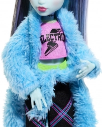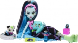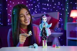 Lalka Frankie Stein z edycji Creepover Party łączy modę i wyobraźnię. Dzięki wyrazistym kolorom, niebieskim pasemkom we włosach i ikonicznym motywom błyskawic dzieci pokochają ją od razu. Zestaw jest pełen drobnych akcesoriów, które pobudzają kreatywne historie i stylowe przebieranki.