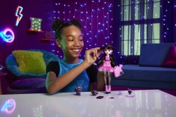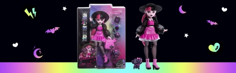 Lalka Draculaura zachwyca dopracowanym strojem w różu i czerni, który podkreśla jej ikoniczny, lekko gotycki wygląd. Zestaw uzupełniają tematyczne drobiazgi i wierny pupil, z którymi dzieci z łatwością wymyślą dziesiątki historii. Dzięki stawom lalkę można łatwo pozować do zabawy i ekspozycji.