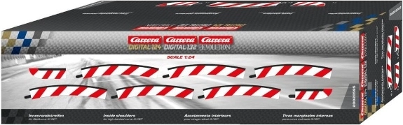 Praktyczny zestaw wewnętrznych poboczy do nachylonego zakrętu 3/30° rozszerzy Twój tor CARRERA i zapewni płynniejszy oraz bezpieczniejszy przejazd. Zawiera 6 szt. poboczy, kompatybilnych z systemami Evolution, Digital 132 i Digital 124 oraz o promieniu R3.