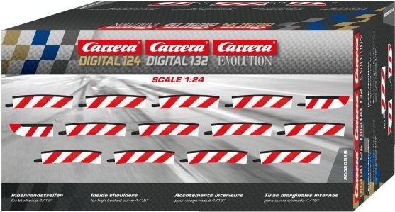 Praktyczny zestaw wewnętrznych poboczy do nachylonego zakrętu 4/15° poprawia stabilność i płynność jazdy na torach CARRERA EVOLUTION, DIGITAL 132 i DIGITAL 124. W opakowaniu znajduje się 12 szt. poboczy o promieniu R4, które poszerzają tor jazdy po wewnętrznej stronie zakrętu i zwiększają przyczepność oraz bezpieczeństwo w szybkich partiach.