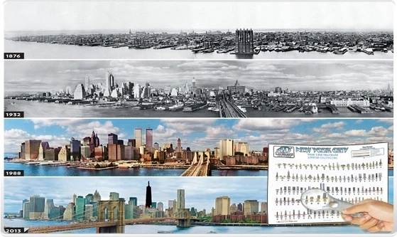 - 4. wymiar – czas: postępuj chronologicznie i obserwuj, jak miasto rosło i się zmieniało.