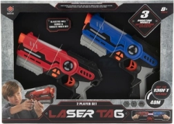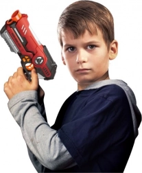 W zestawie znajdują się dwa pistolety laserowe – wyzwij znajomego i zmierzcie siły. Zasięg wykrywania trafień do 40 m gwarantuje pełną adrenaliny rozgrywkę w domu i na zewnątrz.