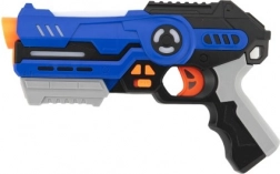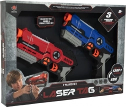 Ten zestaw dwóch pistoletów laserowych zapewnia świetną, dynamiczną rozgrywkę dla dwóch graczy. Dzięki wykrywaniu trafień do 40 metrów czekają was emocjonujące pojedynki w ogrodzie i w salonie. Trzy wskaźniki świetlne na broni przejrzyście pokazują pozostałe życia, a efekty świetlne i dźwiękowe dodają grze jeszcze więcej klimatu.
