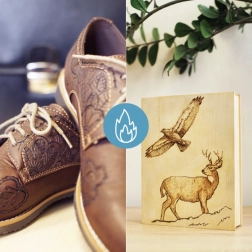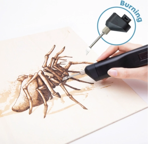 Odpowiednia do dekorowania drewnianych przedmiotów, skórzanych dodatków oraz personalizacji prezentów. Stabilna wydajność i kompatybilność z systemem Multipro pozwalają szybko przełączać się między rysowaniem 3D, cięciem, lutowaniem i wypalaniem.