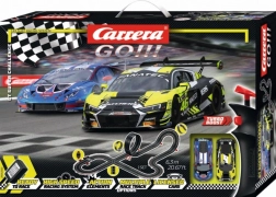 Wejdź do świata wysokich prędkości z torem Carrera GO GT Super Challenge. Trasa o długości 6,3 m oferuje dynamiczne elementy, takie jak pętla, pionowa ściana i skrzyżowanie, które sprawdzą Twoje umiejętności kierowcy. Dołączone samochody Audi R8 LMS GT3 i Lamborghini Huracán GT3 zachwycają detalami i świetną przyczepnością.
