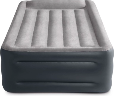 Praktyczny materac dmuchany Intex dla jednej osoby o wymiarach 191 × 99 × 46 cm oferuje komfortową, welurową powierzchnię, stabilną konstrukcję Fiber-Tech i Dura-Beam, wbudowaną pompę elektryczną oraz udźwig do 136 kg. Świetny wybór dla gości, na podróże i biwak.