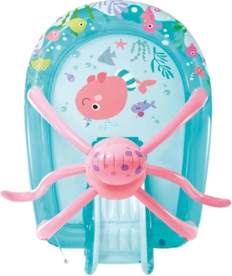 Nadmuchiwane wodne centrum zabaw Ośmiornica zamieni Twój ogród w małe morskie królestwo. Dzięki zintegrowanemu natryskowi podłączanemu do węża ogrodowego tworzy delikatny efekt wodny, który dzieci uwielbiają, a zjeżdżalnia dopełnia zabawę bezpiecznym ślizgiem do baseniku. Dodatkowa nadmuchiwana mata zwiększa wygodę podczas siedzenia i zabawy.