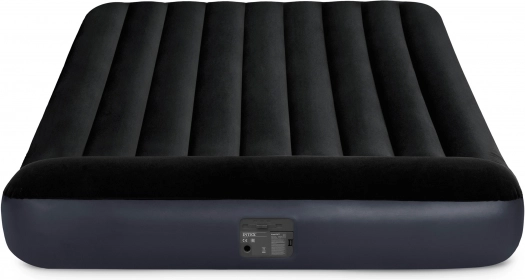 Ten komfortowy, dwuosobowy nadmuchiwany materac INTEX w eleganckim, ciemnym kolorze świetnie sprawdzi się w domu i na działce. Górna welurowa powierzchnia jest przyjemna w dotyku i nie ślizga się, a wewnętrzne wzmocnienia Dura‑Beam Fiber zapewniają wytrzymałość i równomierny rozkład ciężaru dla zdrowego snu.
