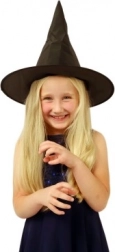Ten czarodziejski kapelusz ma tradycyjny spiczasty kształt i szerokie rondo, co czyni go autentycznym dodatkiem do kostiumu.