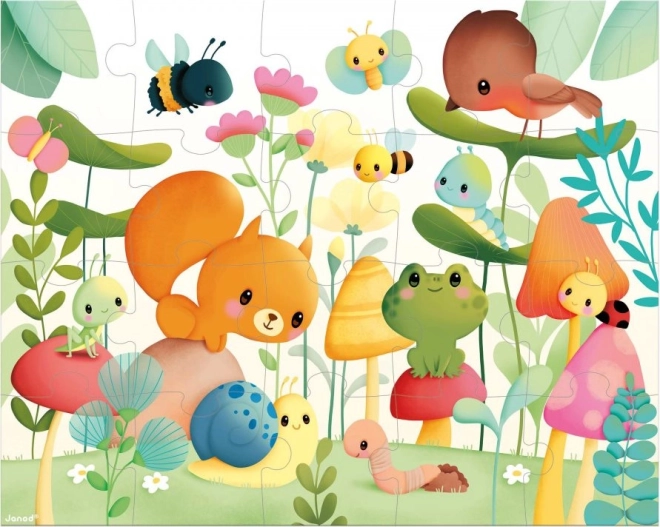Odkryj urocze puzzle dla dzieci w praktycznym kuferku marki JANOD. Zestaw zawiera 20 dużych elementów z wesołymi ilustracjami leśnej i ogrodowej przyrody, idealny dla dzieci od 2 lat. Dzięki większym i łatwym do chwytania elementom rozwija małą motorykę, cierpliwość i logiczne myślenie. Ułożony obrazek ma około 50 × 40 cm i świetnie sprawdzi się w domu oraz w podróży.