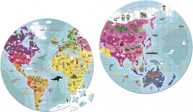 Okrągłe puzzle JANOD Globus są pięknie ilustrowane i idealne dla dzieci oraz dorosłych, którzy lubią układanie i odkrywanie. Podczas łączenia poszczególnych elementów dzieci poznają, gdzie na świecie żyją różne gatunki zwierząt, a jednocześnie trenują koncentrację.