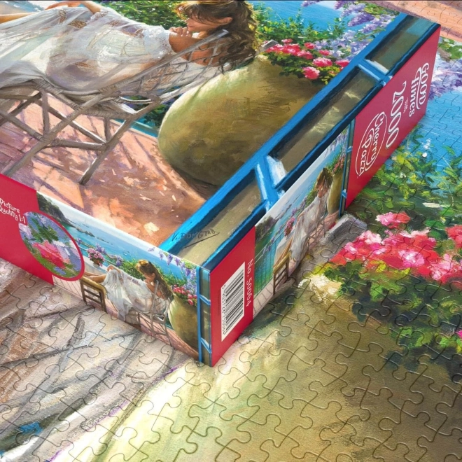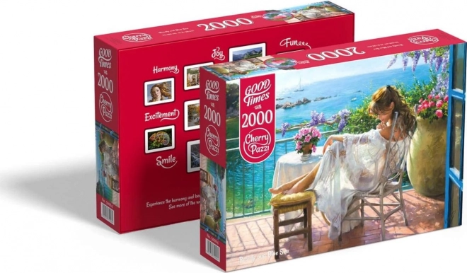 Odkryj urok spokojnej chwili nad morzem. Puzzle CHERRY PAZZI prezentują subtelną, artystyczną scenę kobiety odpoczywającej na tarasie z widokiem na ocean. Z 2000 starannie wyciętymi elementami to idealny wybór dla miłośników bardziej wymagających wyzwań i pięknych motywów do wnętrza.