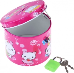 Skarbonka zamykana jest na kłódkę i dostarczana z dwoma kluczykami – dla łatwego dostępu i pewności, że oszczędności nie otworzą się przypadkowo.