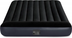 Dwuwarstwowy materac dmuchany INTEX o wymiarach 203 × 152 × 25 cm oferuje wygodne spanie dla 2 osób w domu i w podróży. Wykonany z wytrzymałego PVC, z przyjemną, wodoodporną powłoką welurową. Dzięki wbudowanej pompie elektrycznej napompujesz go w około 250 sekund. Stabilna konstrukcja z technologią Dura-Beam Fiber zapewnia doskonałe podparcie kręgosłupa, a zintegrowana poduszka dodaje dodatkowego komfortu. Praktyczny zawór umożliwia szybkie spuszczanie powietrza i łatwe przechowywanie.