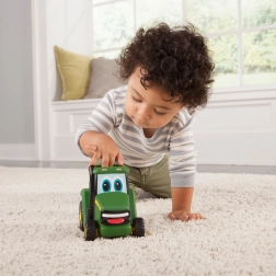 Ten uroczy traktor to świetny prezent dla przedszkolaków i wszystkich dzieci, które kochają maszyny JOHN DEERE i dynamiczną zabawę.