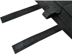 Organizer jest wykonany z materiału filcowego, co zapewnia jego lekkość i łatwość obsługi. Instalacja organizera jest szybka i intuicyjna: górna część jest przymocowana do dolnej części zagłówka za pomocą rzepa, a dolna część za pomocą metalowych haczyków do siedzenia.
