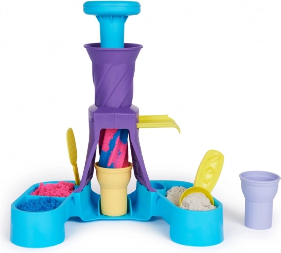 Dzieci mogą tworzyć, dekorować i serwować swoje lodowe kreacje z różnymi kolorami piasku kinetycznego.