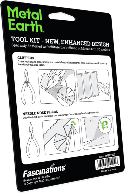 Ten zestaw szczypiec to idealne uzupełnienie dla wszystkich miłośników modeli METAL EARTH i innych metalowych konstrukcji 3D. Połączenie szczypiec tnących i igłowych umożliwia precyzyjne i bezpieczne oddzielanie elementów z metalowych arkuszy oraz wygodne ich kształtowanie podczas montażu.