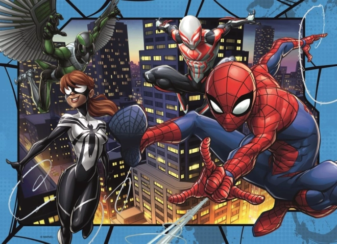 Puzzle Spiderman marki Ravensburger oferują cztery niesamowite układanki z ulubionym bohaterem w jednym opakowaniu.
