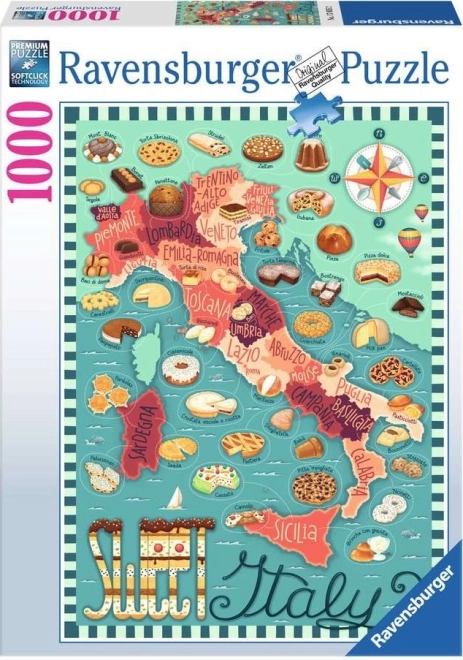 Odkryj urok Włoch w słodkim wydaniu z jakościowymi puzzlami RAVENSBURGER. To szczegółowo ilustrowane puzzle z motywem „Słodka mapa Włoch” oferuje 1000 elementów, precyzyjne wycięcia i matową powierzchnię dla wygodnego układania. Idealne dla miłośników podróży, gastronomii oraz relaksu przy układankach.