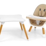 Możliwość zmiany konfiguracji z wysokiego krzesełka na zestaw dla dzieci, w tym stolik i krzesełko.