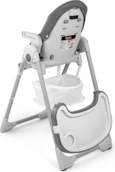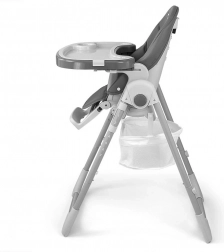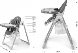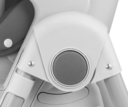Krzesełko jest także składane, dzięki czemu łatwe w transporcie i przechowywaniu. Z tyłu nóżek znajdują się gumowe kółka ułatwiające przesuwanie, a przednie nóżki wyposażono w gumowe podkładki dla stabilności. Dostarczane w eleganckim szarym kolorze, który pasuje do każdego wnętrza.