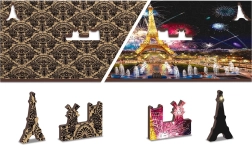 Układaj kolorowy motyw nocnego Paryża lub drugą stronę z powtarzającym się wzorem wyłącznie według kształtów elementów. Dwa wyzwania w jednym pudełku.