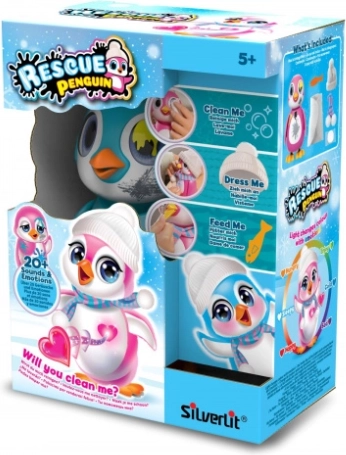 Ten interaktywny niebieski pingwin zapewnia dzieciom wyjątkowe doświadczenie opieki i zabawy. Za pomocą magicznej ściereczki wyczyścisz go, czym odblokujesz świetlne i dźwiękowe funkcje. Jego migające serce zmienia kolory w zależności od emocji – gdy jest szczęśliwy, zmęczony, zmarznięty lub głodny, da ci o tym znać.