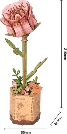 Ta elegancka drewniana róża to świetny prezent i stylowy dodatek do wnętrza. Dzięki sprytnemu rozwiązaniu elementów model składa się łatwo, a jednocześnie wygląda bardzo realistycznie. Z niskim poziomem trudności i przybliżonym czasem budowy 30 minut projekt spodoba się początkującym, rodzinom i kreatywnym entuzjastom.
