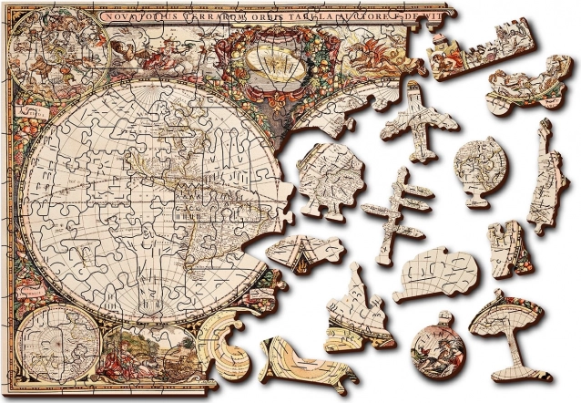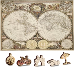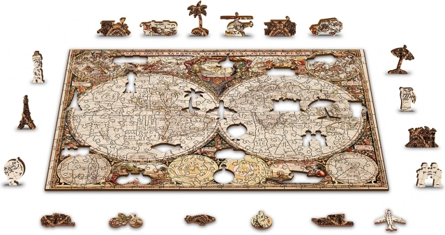 Odkryj urok drewnianych puzzli z motywem ANTYCZNEJ MAPY ŚWIATA. Te dwustronne puzzle 2w1 oferują większe wyzwanie dzięki unikalnie kształtowanym elementom i precyzyjnej obróbce laserowej. Wykonane z wytrzymałej płyty HDF, z gładkimi krawędziami bez drzazg i całkowicie bez plastikowych opakowań – idealny eko prezent na każdą okazję.
