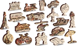 Elementy-figurki w kształcie zwierząt, budowli i przedmiotów z subtelnie laserowo podkreślonymi detalami nadają układaniu charakter i wciągające wyzwanie.