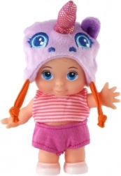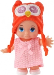 Ta mała laleczka z dużymi oczami i radosnym wyrazem twarzy jest świetnym towarzyszem codziennej zabawy. Twardy plastikowy korpus dobrze trzyma kształt, ruchome ramiona w barkach umożliwiają łatwe ustawianie i przebieranie. Kolorowa zwierzęca czapeczka nadaje laleczce wyjątkowy styl i zachęca do opowiadania historii.