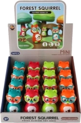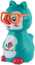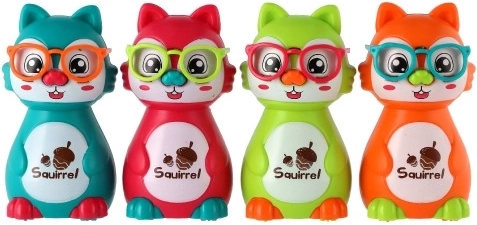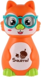 Prosty mechanizm: po naciśnięciu głowy wiewiórka sama rusza, zapewniając dzieciom niekończącą się zabawę.