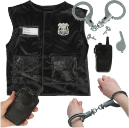 Dziecięcy kostium policjanta jest idealnym dodatkiem dla małych stróżów porządku i entuzjastów gry w odgrywanie ról. Zestaw zawiera czarną kamizelkę policyjną, kajdanki z kluczykami oraz krótkofalówkę dla realistycznych doznań z zabawy.