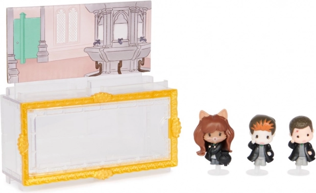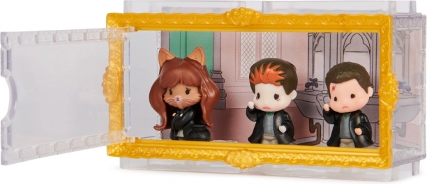 Przeżyj kultową scenę z filmu Harry Potter i Komnata Tajemnic dzięki dopracowanemu kolekcjonerskiemu zestawowi Wizarding World Polyjuice Multi Pack. W środku znajdziesz trzy figurki 4 cm (Harry, Hermiona, Ron), transparentne etui w kształcie ramy z dwustronnym tłem łazienki oraz podstawki. Etui można piętrować i łączyć z innymi zestawami Micro Magical Moments – idealne dla fanów i kolekcjonerów.