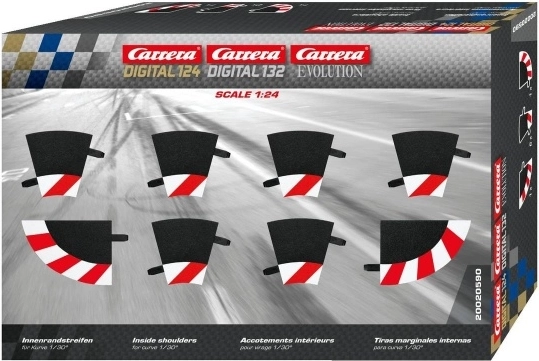 Ulepsz swoje tory wyścigowe dzięki wewnętrznym poboczom do zakrętu 1/30° (R1), kompatybilnym z torami CARRERA Evolution, Digital 132 i Digital 124. Zestaw zawiera 6 sztuk dla stabilniejszego pokonywania zakrętów i bardziej realistycznego wyglądu trasy.