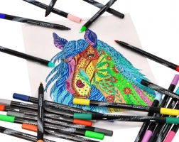 Cienka, okrągła końcówka do precyzyjnych linii i konturów, ścięta (skośna) końcówka do szybkiego kolorowania i wyrazistych pociągnięć. Przełączasz się między nimi jednym obrotem flamastrem.