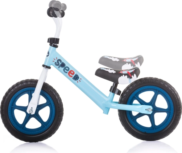 Lekkie dziecięce jeździk biegowy CHIPOLINO Speed w kolorze niebieskim pomaga małym kierowcom rozwijać równowagę, koordynację i pewność siebie podczas pierwszych przejażdżek. Oferuje koła 12" z pianki EVA tłumiące wstrząsy, regulowane wysokością siodełko oraz kierownicę, a także bezpieczne antypoślizgowe chwyty. Idealny dla dzieci o wzroście 80–120 cm.