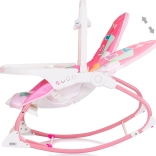 Zawiera 3-punktowe pasy bezpieczeństwa i możliwość zablokowania bujania do stałej pozycji.