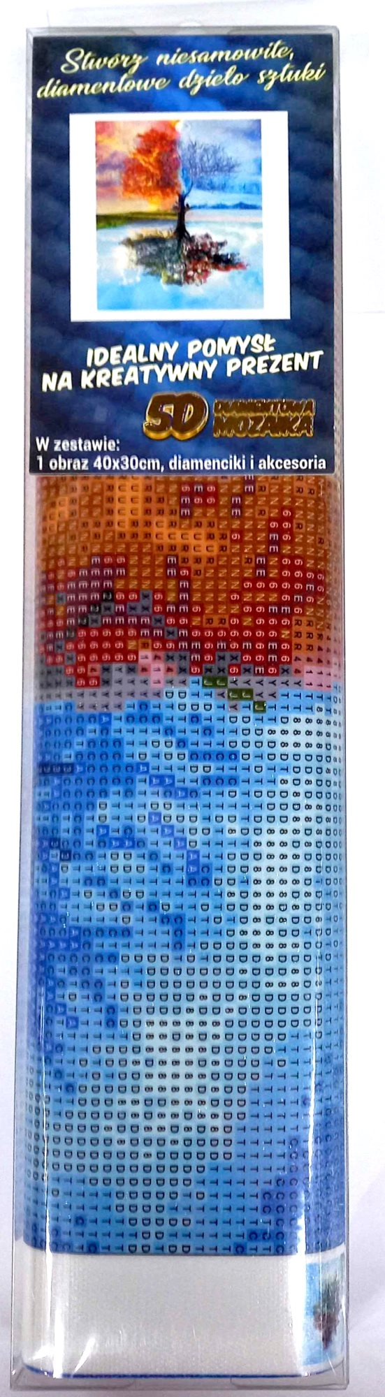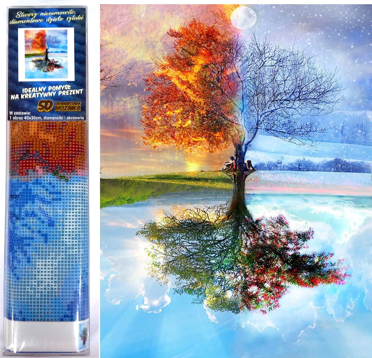 Malowanie diamentowe to świetny sposób, by odpocząć, a jednocześnie stworzyć piękną mozaikę z błyszczących kryształków. Motyw drzewa w czterech porach roku wnosi kolorową harmonię, która wyróżni się w każdym wnętrzu. Wszystko, czego potrzebujesz, znajdziesz w jednym pudełku – otwórz, zacznij przyklejać i obserwuj, jak obraz ożywa.