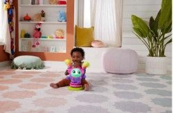 Fisher-Price DJ skacząca gwiazda daje dzieciom w wieku 9–36 miesięcy radość z ruchu i odkrywania. Interaktywne przyciski uruchamiają światła, melodie, piosenki i mówione frazy, a sprężynowy mechanizm roztańczy zabawkę w rytm muzyki. Dzięki poziomom trudności nauki zabawka rośnie wraz z dzieckiem i wspiera naturalną ciekawość.
