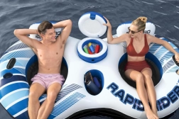 Dmuchana wyspa jest idealna na letni odpoczynek na wodzie. Została wykonana z trwałego materiału, który zapewnia długą żywotność i łatwą obsługę. Dzięki oparciom i dwóm uchwytom na napoje możesz delektować się komfortem jak na kanapie! A to wszystko przy stałej temperaturze napojów, które utrzymuje wbudowana lodówka.