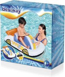 Zapewnij dzieciom bezpieczną zabawę w wodzie z lekką i poręczną dmuchaną łódką w kształcie bolidu. Kolorowa grafika, wygodne oparciowe siedzisko i dmuchane dno gwarantują komfort oraz stabilność, a zintegrowane uchwyty dodają pewności podczas zabawy.